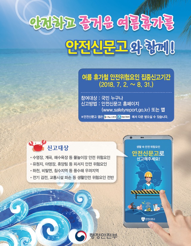 2. 신고대상 : 물놀이장 등 피서지 안전 위험요인, 풍수해 우려지역, 감전사고 등